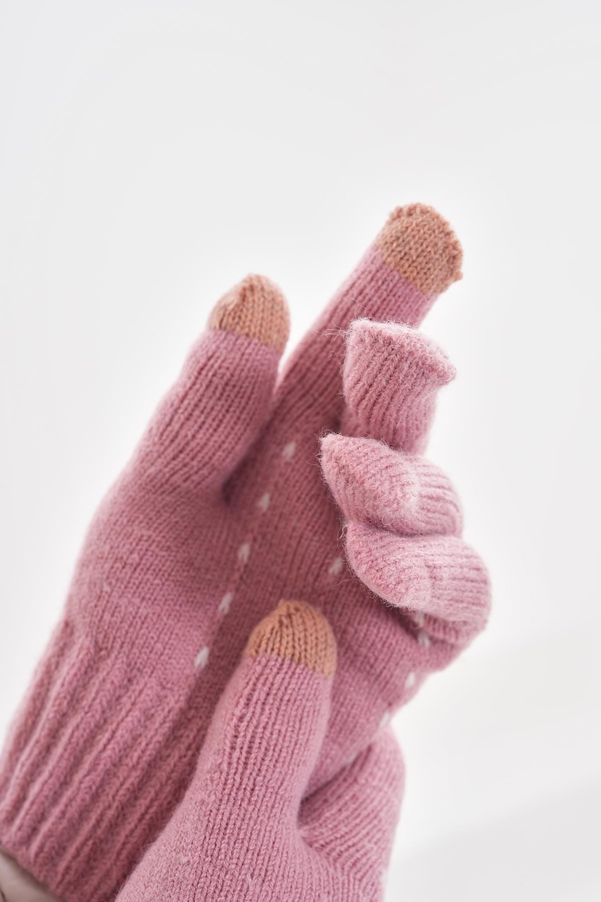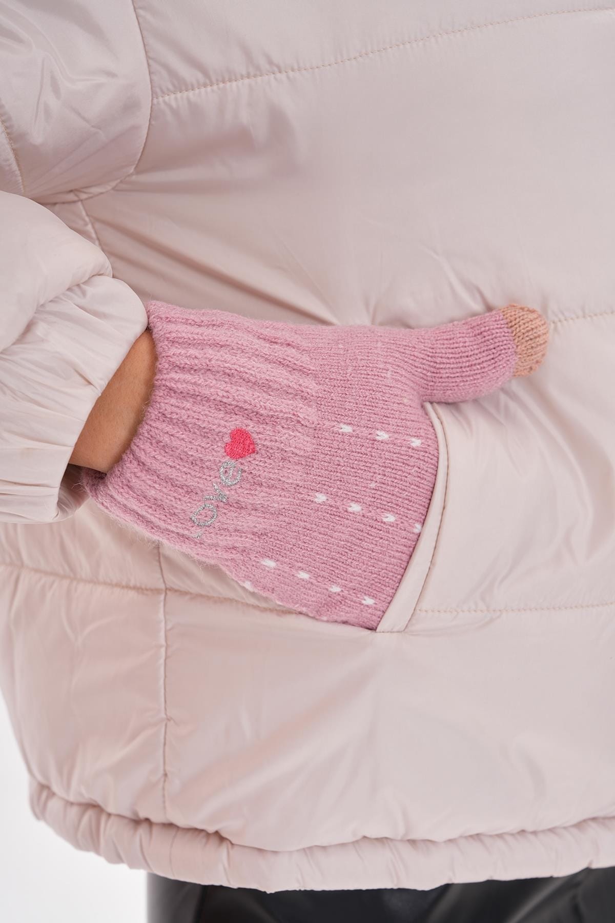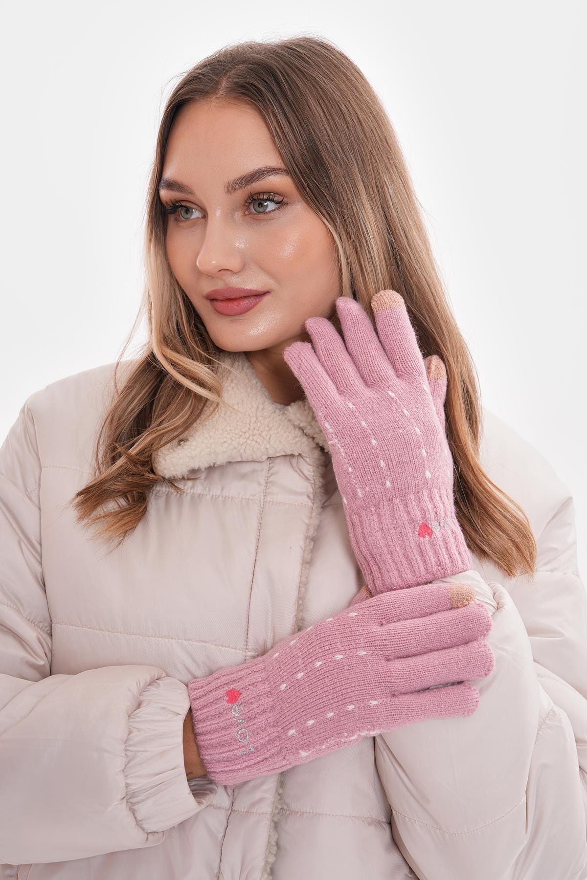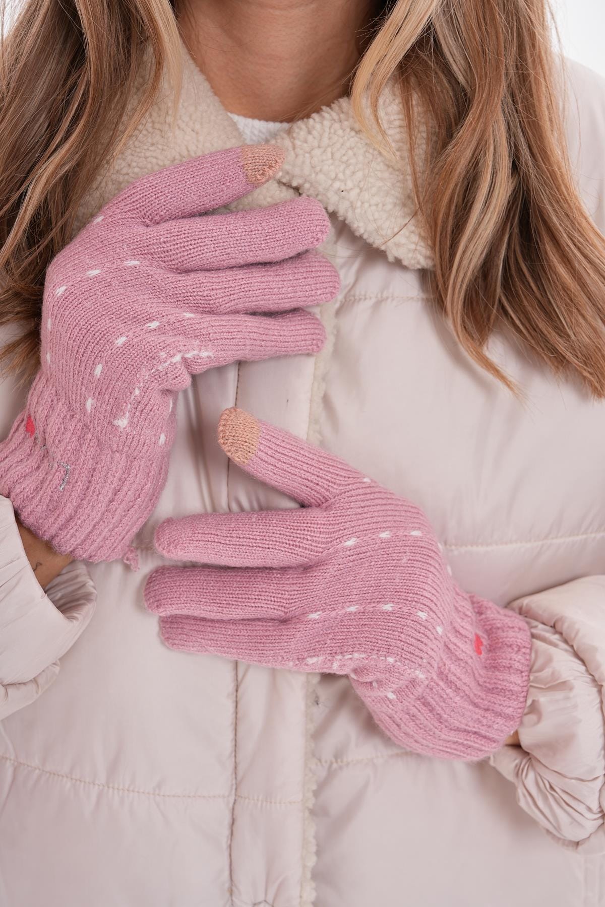 Fallegir og hlýir bleikir vettlingar með hvítum litlum hjörtum og „LOVE ❤“ merki á úlnliðnum. Snjallskjá-vingjarnleg hönnun á fingrum gerir þér kleift að nota símann án þess að fara úr hönskunum.
