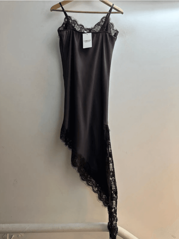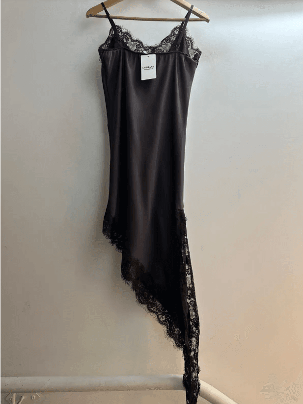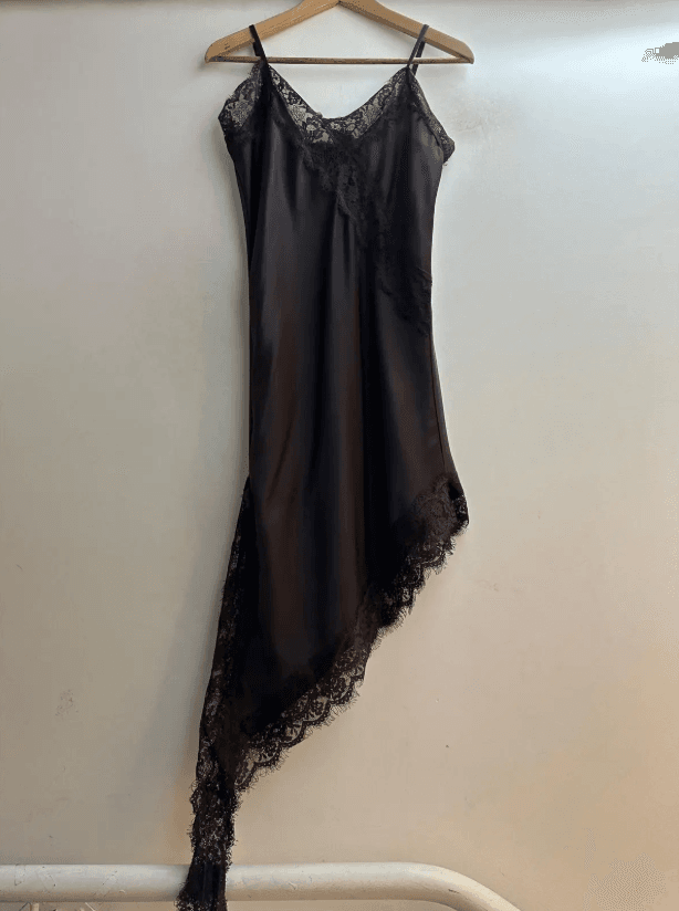 Léttur og silkimjúkur satín kjóll skreyttur fallegri blúndu, með smá teygju