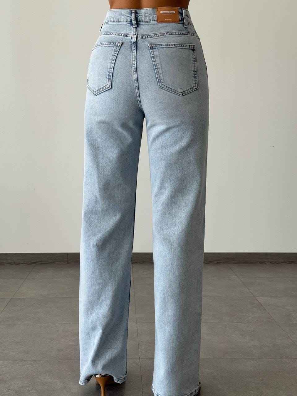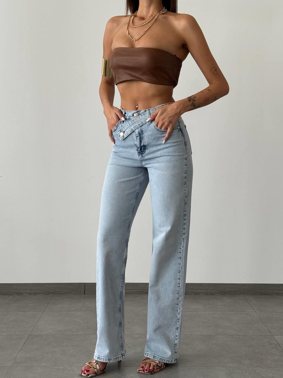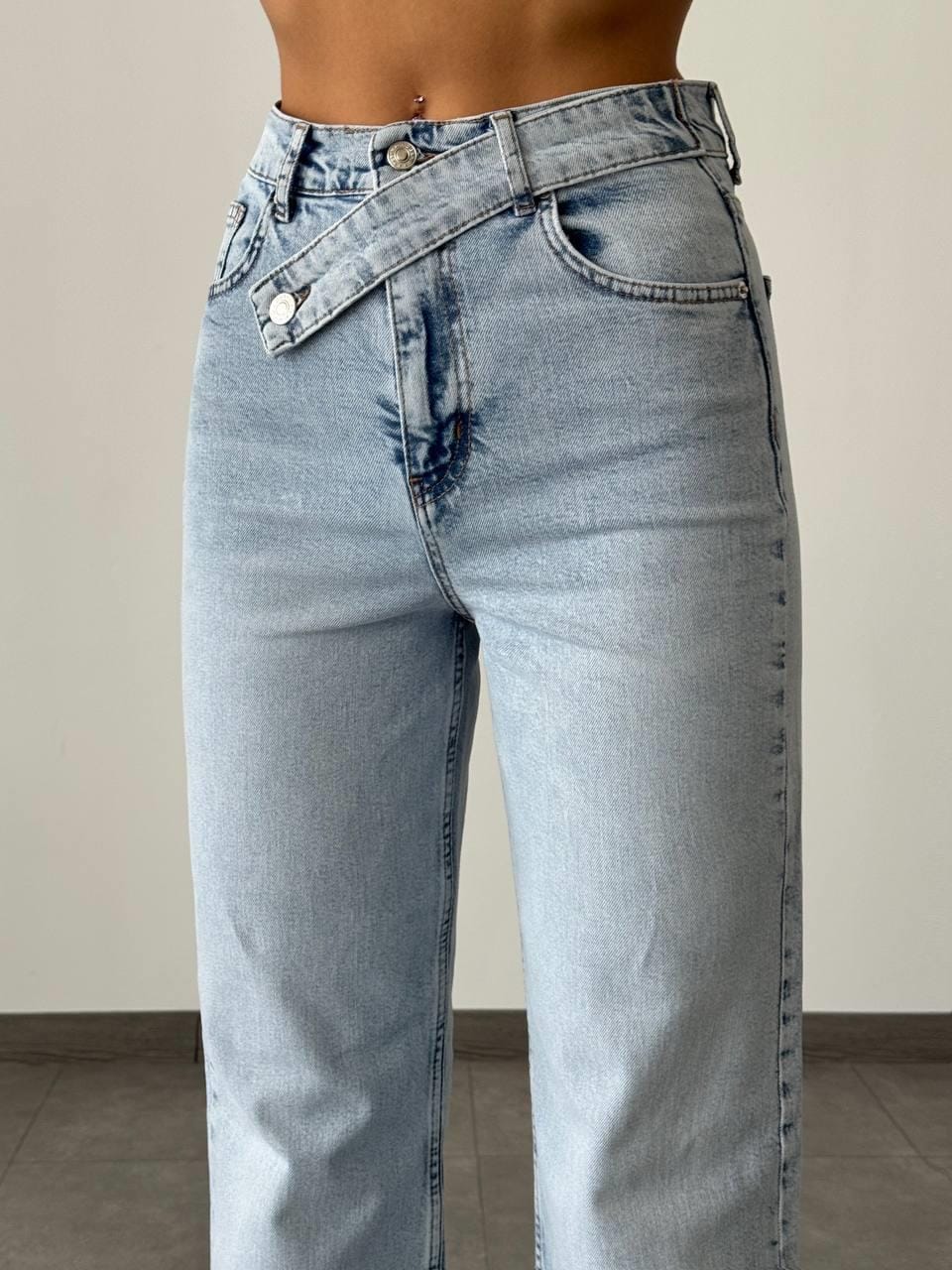 Ferskar og einstakar gallabuxur sem taka klassískt snið og færa því nútímalegan “twist”. Ljósblár gallinn er tímalaus og auðvelt að para við allt, en það sem gerir þessar buxur sannarlega sérstakar er óhefðbundið mittissniðið með skábelti og tvöföldum hnöppum sem gefur þeim edgý og töff yfirbragð.